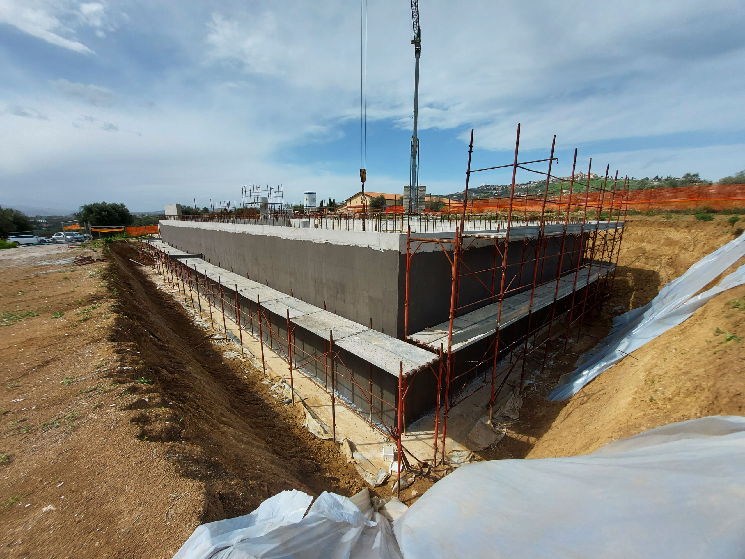 La realizzazione della struttura interrata risponde non solo ai requisiti prestazionali imposti dal D.M. 17.01.2018 (NTC) per la salvaguardia delle opere in calcestruzzo armato dall’acqua e dagli agenti aggressivi, ma anche alle normative sulla sicurezza dei luoghi di lavoro (D. Lgs. 101/2020 e D. Lgs. 203/2022) e sugli ambienti destinati alla trasformazione alimentare. Le scelte tecniche condivise con la progettazione e la committenza sono state finalizzate a garantire l’impermeabilizzazione completa contro le acque di percolamento e le spinte idrostatiche, dall’involucro di fondazione fino alla copertura, e la tutela della salubrità degli ambienti di lavoro e delle aree di stoccaggio del vino, con sistemi di barriera efficaci anche contro gas naturali come radon e metano.